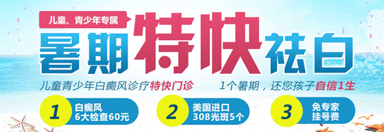 夏季是白癜风高发的季节,尤其是青少年患者一定要做好预防和治疗的工作。而在白癜风高发期,遇上黄金治疗暑期,可谓是不幸中的万幸。为了更好地帮助广大儿童青少年患者利用假期时间尽快康复,不影响后期学习,苏州瑞京白癜风研究院推出暑期特别定制——儿童、青少年专属暑期特快祛白